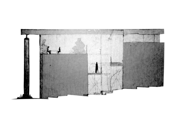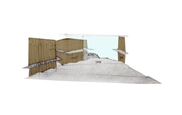 Sketch – auditorium as one big stairs following the natural height differences