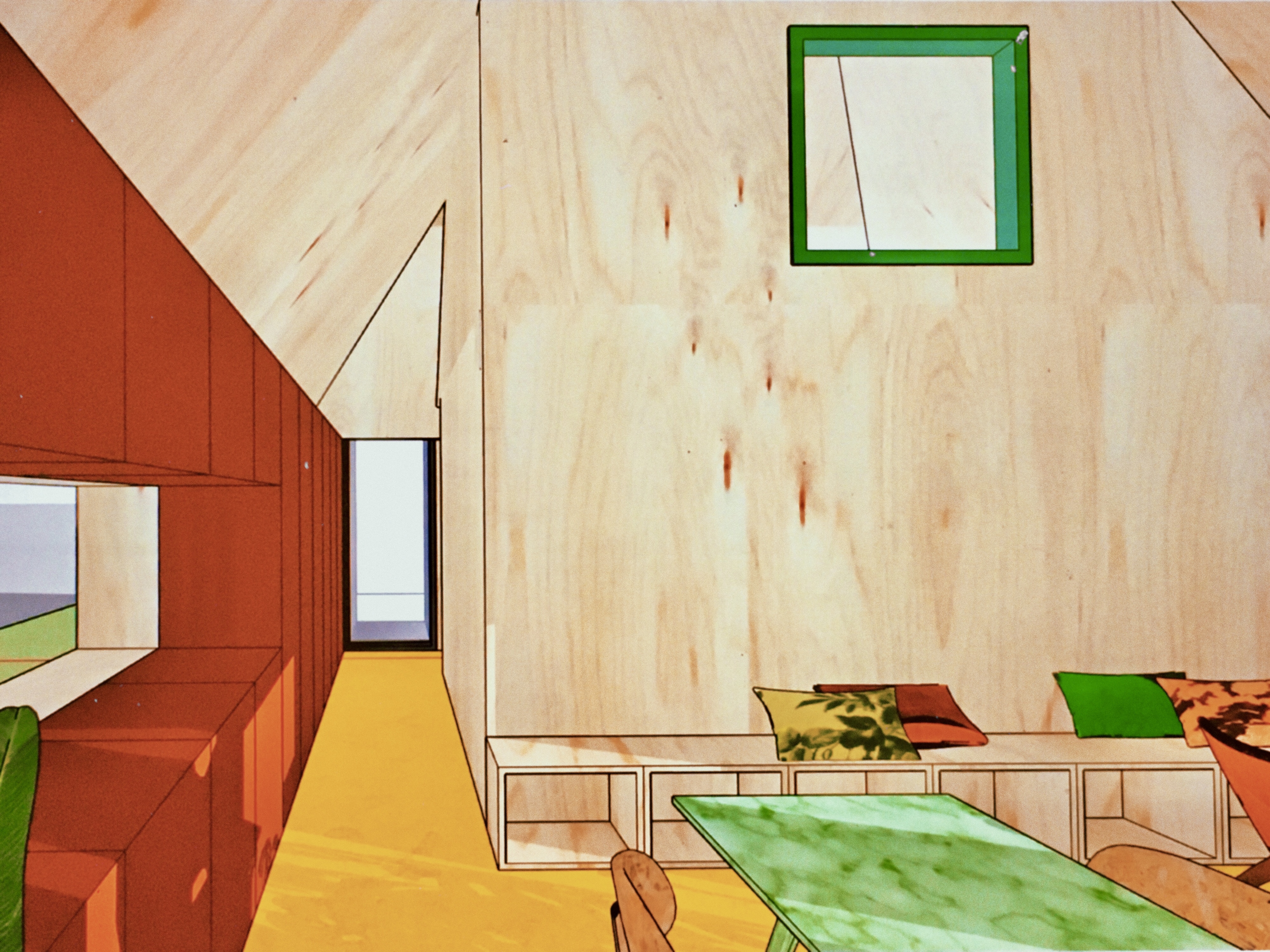 A compact house surrounded by a green garden. This was the starting point for the design of this building. The house is small, but has all the functions that are needed to live comfortably. The big sliding glass doors in the living room towards the garden connects inside and outside.