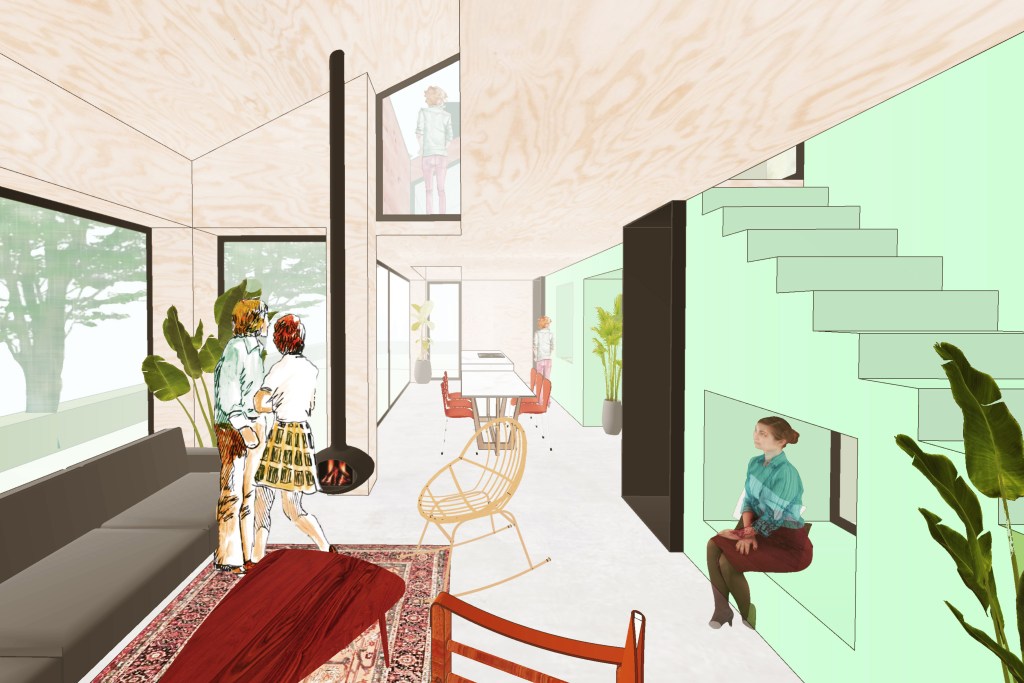The location has a unique green view. To respect the surrounding buildings, the shape of the two flexible houses will be traditional with a slanted roof, but with a modern appearance and materiality.