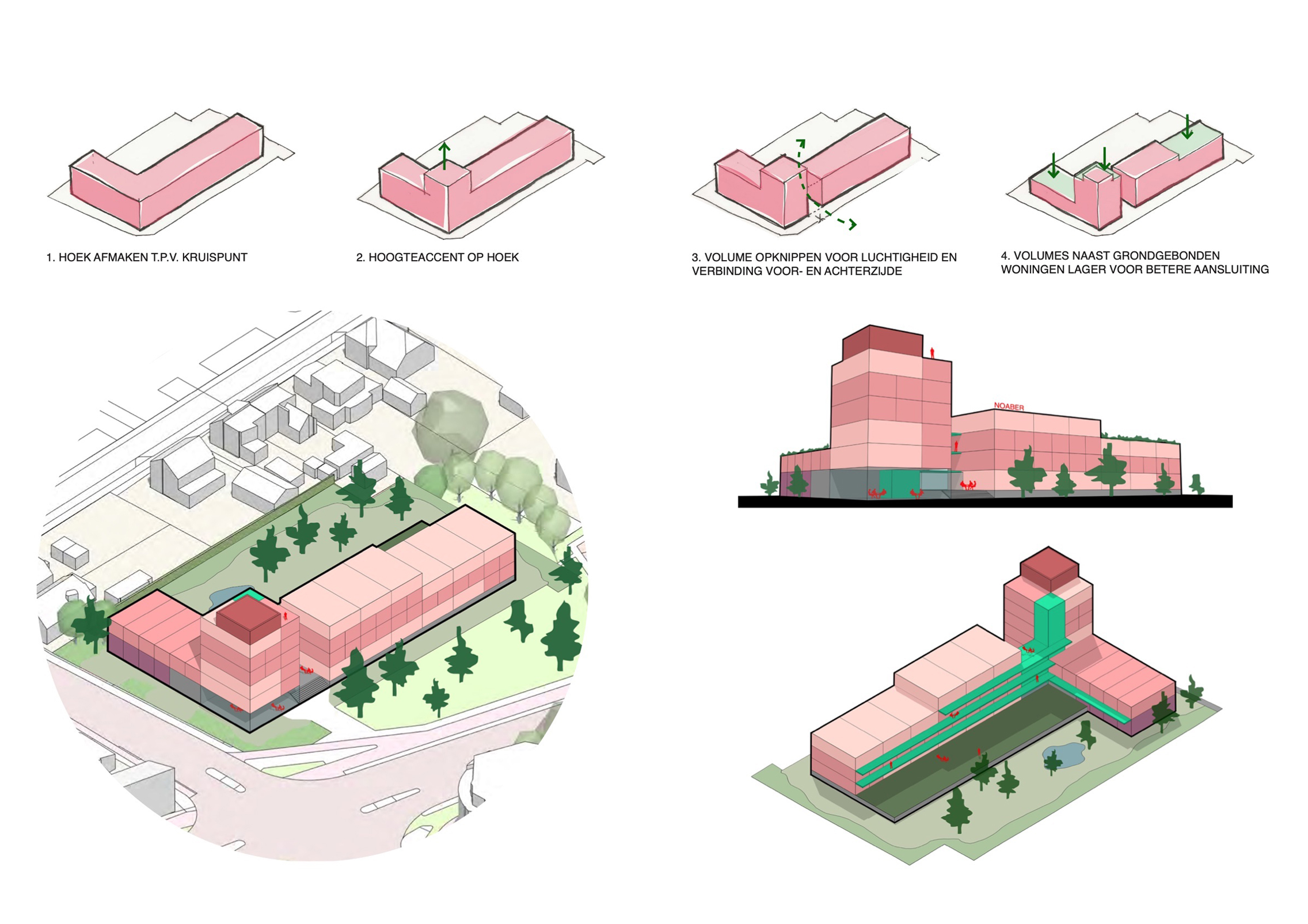 Together with JCR Architecten, we worked on a study for an urban living environment where community life is an important part of the concept. The project comprises 54 residential apartments for a diverse target group: residents with and without a care need, with care on demand as a natural part of everyday life. The foundation of the concept is noaberschap, which means looking out for one another, and genuine involvement with your neighbors.